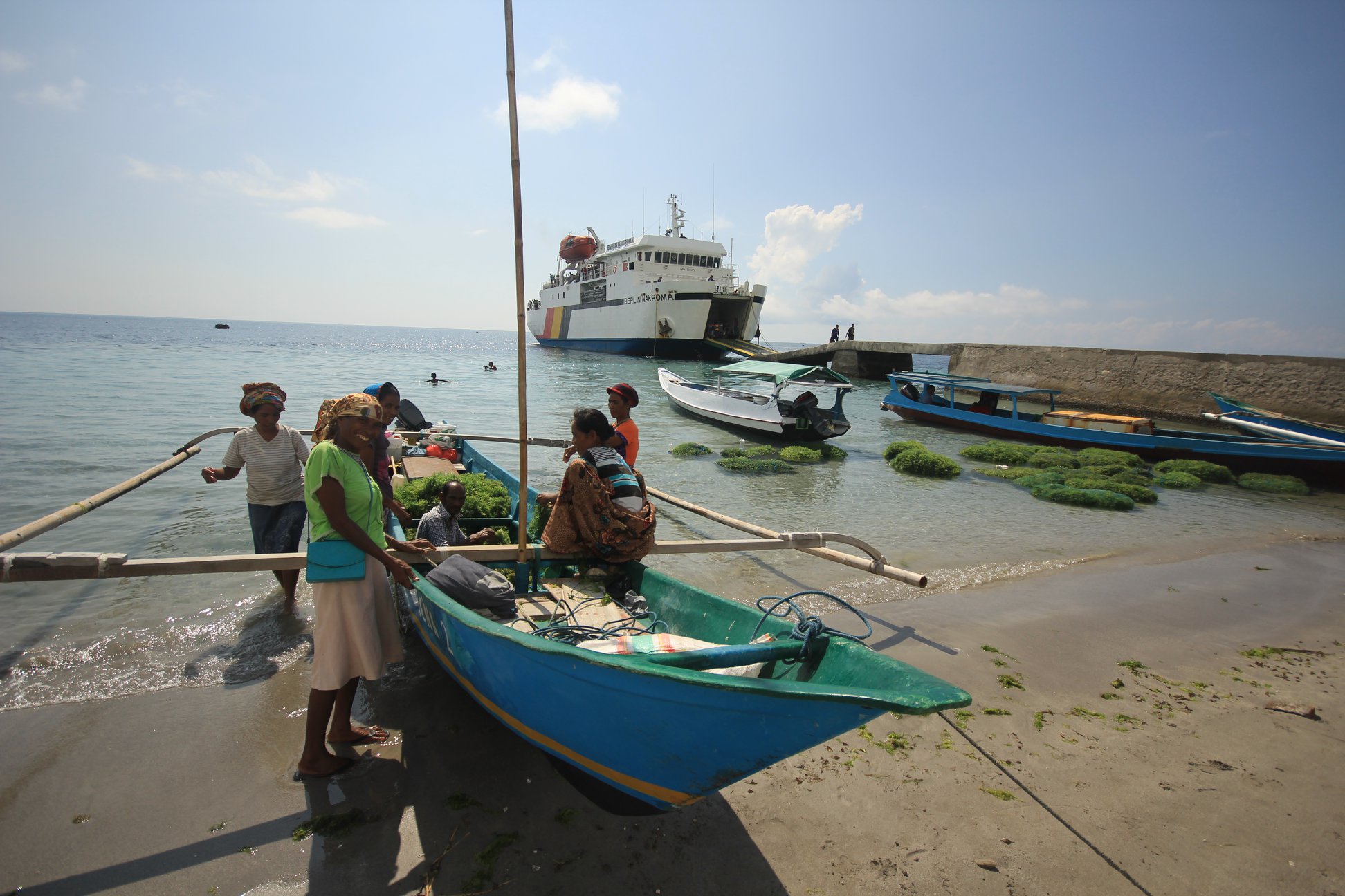 All we did there was, relaxing at our sea view bungalow reading a book or just muckin around with my photo/videos I took during the stay, jump into the water, snorkel, eat, sleep, went for a walk around the village and felt great! The local people were so friendly. All we see are just people smiling at us and say bondia, botarde and bonoite to greet us. Most of the locals are fishermen/women and seaweed farmers. I quite enjoy walking along the coast looking at them spear fishing or spread the net on a tiny boat with all of the family members on board. You can see their catches on Saturday market where big boat from Dili visit, The Berlin Nakroma.
